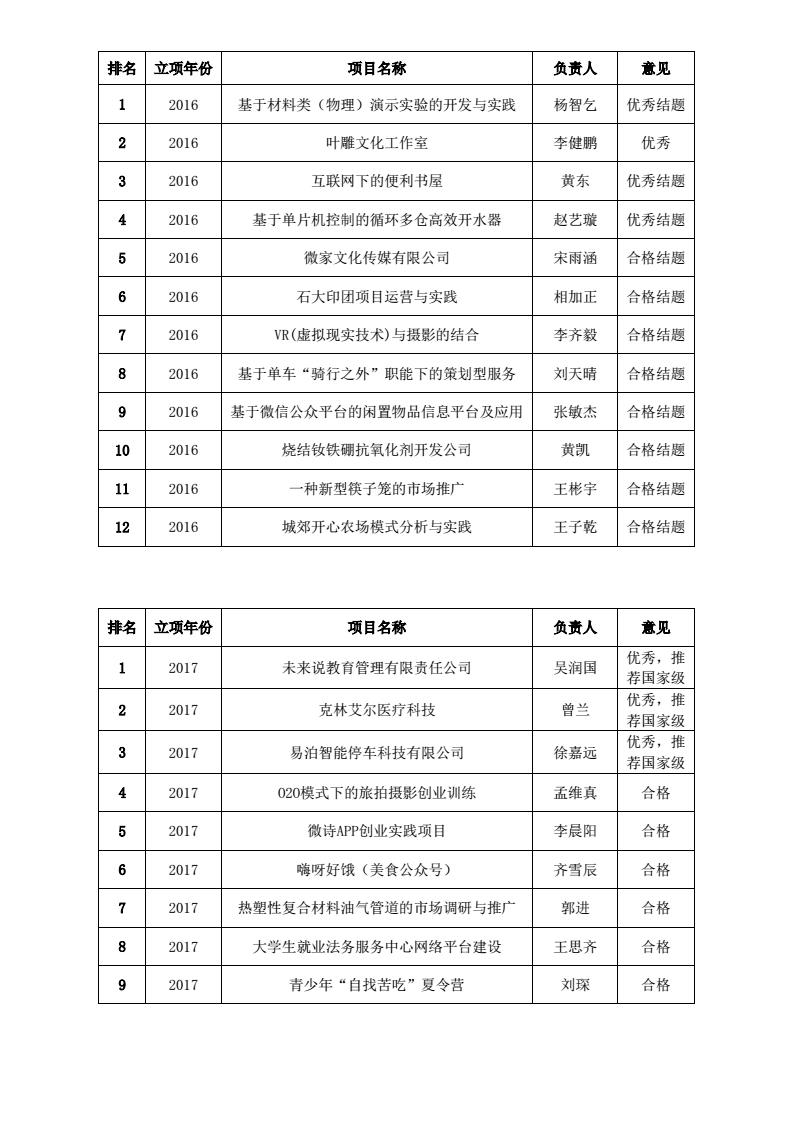 经过前期材料提交、审核、答辩、评议等环节,现将2018年大学生创业训练计划项目第一次阶段性检查暨国家级项目选拔推荐结果公示如下。