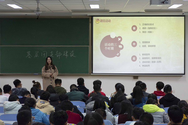 为增进团干部对自身职责的认识,了解团干部的工作方向。11月11日晚,化学工程学院学生会于南教402教室举办“基层团支部建设”宣讲会。本次会议由团总支丁仪主持召开,17级,18级全体团干部参加此次会议。