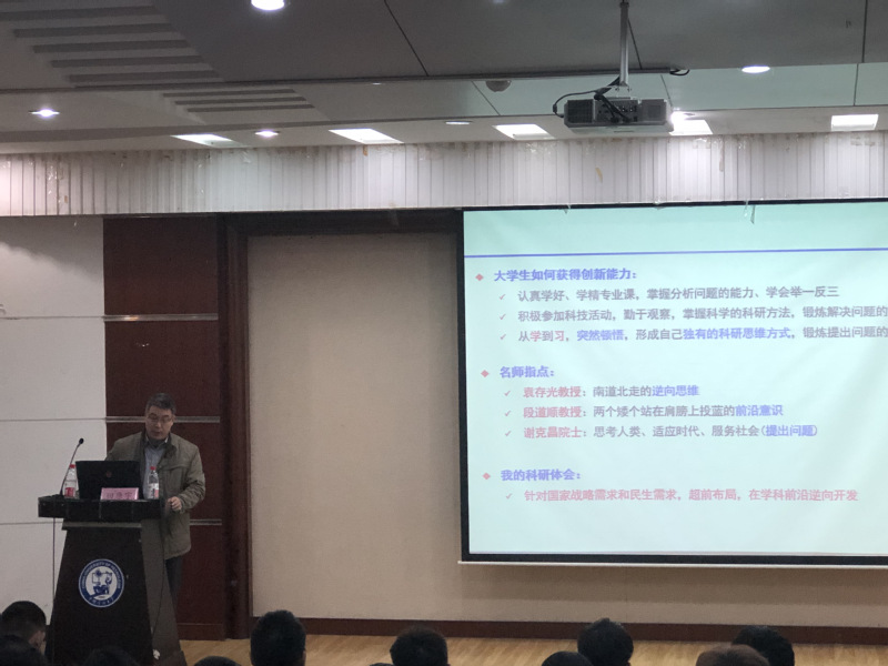 12月6日晚,由校大学生科技协会主办的第257期科创论坛在西环301教室举办。本次论坛由田原宇教授主讲,他以大学生创新能力与挑战杯为主题分享了他对大学生创新活动的看法和讨论。各院师生140余人参加本次论坛。