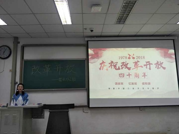 12月16日,能源化学工程专业1702班于南堂117开展了以改革开放四十周年为主题的团日活动。活动参与者为能化1702班全体成员,由能化1702班团支书许艺菲主持。