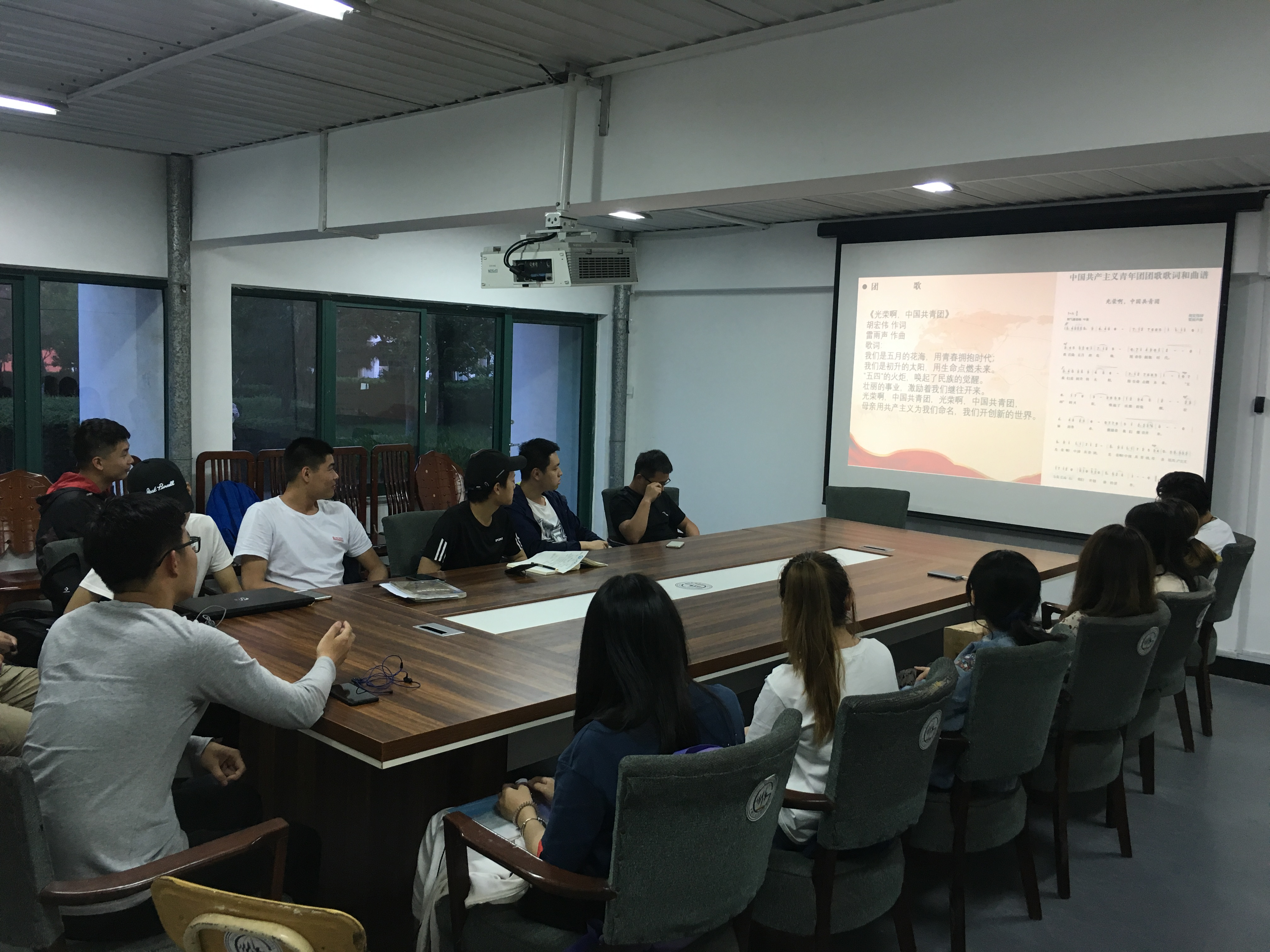 本次团日活动由地信1702团支书张静主持,团支部全体成员参与,共分为四个部分。首先,全体成员起立齐唱团歌。然后是以宿舍为单位展示本宿舍准备的节目,其中以李志远为舍长的宿舍为大家带来的节目—读入团誓词,以张静为舍长的宿舍给大家带来的演讲—我是中国人,这两个节目都获得大家的一致好评和赞赏。其次,由组织委员朱浩然主持团知识竞赛,大家用击鼓传花的方式参与,都表现出极大的热情。最后,由团支部每一位成员轮流表达自己对班级、共青团以及党和国家的寄语和期望。