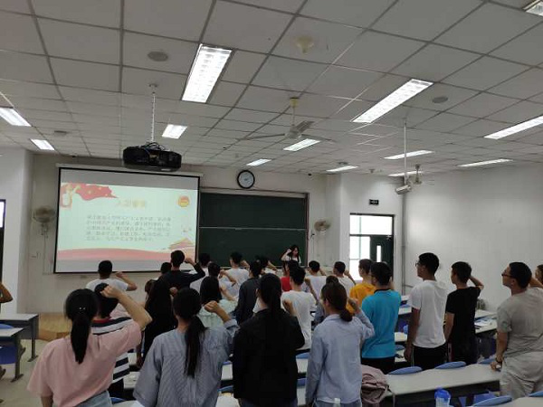 活动伊始,张怡婷简要介绍了此次活动的目的,阐明本次活动旨在迎接共青团中国石油大学第十六次代表大会的召开,在团代会筹备和召开期间营造良好氛围,使广大团员积极参与到团代会的各项工作中去。接着,活动进行第一项,全体起立,高声诵读入团誓词、唱团歌。随后,活动第二项,全体学生在装控1805班长李红雨的带领下学习团史团情基本知识。李红雨针对团的历史、团的重要章程、团员的责任和义务等内容结合PPT进行了讲解。紧接着,活动进行最后一项:团史团情知识竞答。在激烈的抢答中本次活动迎来尾声。最后,张怡婷对本次活动做出总结并宣布活动结束,全体学生合影留念。