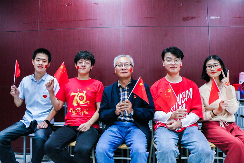学院党委副书记邹维忠脸贴红旗图案,手持小红旗与学生们一起观看阅兵。在看到许多学生自发穿着红色衣服且拿着国旗时,邹维忠对此表示欣慰,他说:“从大家的这些细微的行为中,我们可以看出来我们文学院学生所具有的爱国意识。”他希望学生们能通过大学的学习和生活培养自己正确的世界观、人生观和价值观,以所学回馈社会和国家,将爱国情怀融入到实践过程中去。