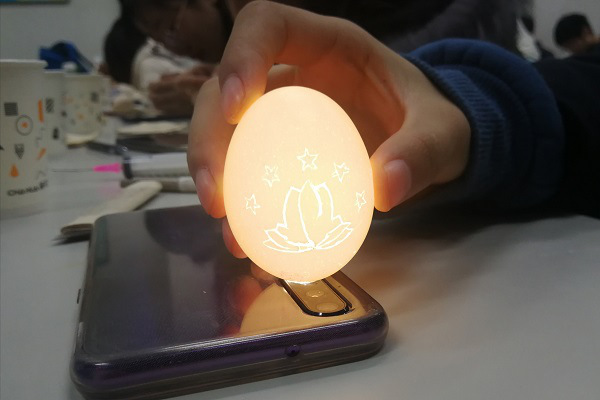 从1887年葡萄牙占领澳门到1984年邓小平提出“一国两制”的方针解决历史遗留的澳门问题,再到1999年12月20日中华人民共和国正式恢复对澳门行使主权,化工(菁英)1707团支书应东利首先带学生们回顾澳门回归的艰难历史;然后又分别从发展多元,城市风貌,福利多样,环境治安四个方面总结“一国两制”为澳门,为祖国谱写的辉煌篇章;活动最后由学校玲珑蛋雕社负责人董江龙向学生讲解蛋雕工艺,学生设计有关澳门回归和“一国两制”的图案并亲自动手进行蛋雕制作,以实际行动向澳门回归二十周年献礼。“我觉的这次的团日活动非常的有意义,除了解了蛋雕的知识,又通过蛋雕表达我们对澳门回归祖国二十周年的激动之情。”化工(菁英)1707团支部学生耿旭超这样说。