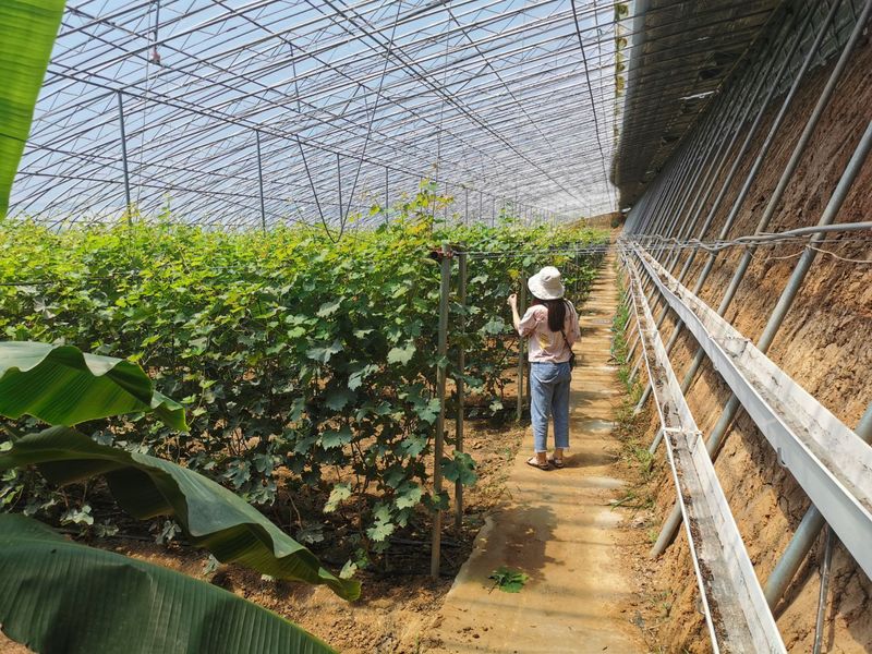 (实践队员参观“黄金籽”西红柿种植大棚 苗心怡摄影)