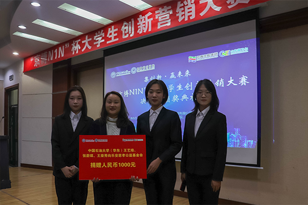 本次活动分两个阶段进行。在大赛决赛评审阶段,来在全校的13个晋级决赛团队围绕营销状况、创新性、市场调研、可行性分析、网络关注度、社会公益等方面进行了路演答辩。经过现场评审和营销数据考查,最终来自经济管理学院的锐驰队获评营销精英金奖,来自经济管理学院的经济2001队、新能源学院的QDC快来针队荣获营销精英银奖,新能源学院的好再来一队、海洋与空间信息学院的cos队、新能源学院、海洋与空间信息学院、材料科学与工程学院的好再来二队队获评营销精英铜奖;锐驰队和石工三班创新创业队分别获得乐安慈孝基金会公益伙伴奖和最佳社会公益奖。在颁奖典礼环节,与会嘉宾为获奖团队颁奖,经济管理学院党委副书记刘江华教授、山东康乃尔材料科技有限公司史镇榕总经理分别进行致辞讲话。在颁奖仪式中,乐安慈孝基金会副秘书长王思娟及学校团委兼职副书记孔佑然分别代表接收了参赛团队为基金会和爱心小屋提供的爱心捐款