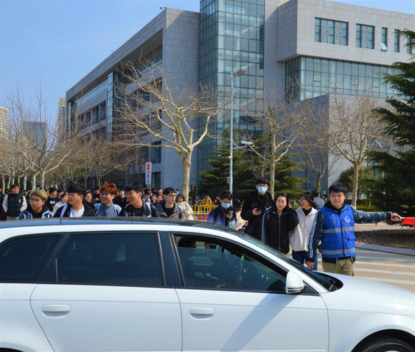 身着蓝马甲、挥舞小旗子、吹着口哨、立正站直,在人流量较大的南教楼路口和行政楼下,交通文明志愿者们做着早已熟记于心“标准动作”,指挥着来往的车辆和学生。海洋与空间信息学院2019级本科生崔宜德作为校园志愿服务岗的一员,已经“在职”两个月了,谈到两个月来的体会,他说:“两个月的值勤,虽然辛苦,但看到车内的老师、过往的学生向我们竖起大拇指的时候,觉得都值得了。志愿服务不仅是一个用劳动传递爱、收获爱的过程,也是在服务中不断提升自己的过程。”