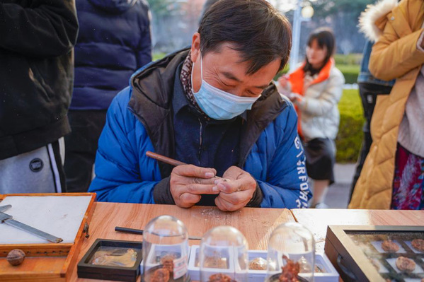 非遗传承人管洪刚现场展示核雕技艺 李润柯摄影