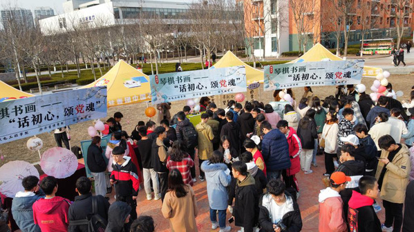 此外,外国语学院开展唱红色歌曲、观红色电影等活动,在学生感受革命英雄铿锵热血的同时设置相关问题,引发学生思考,以达到“知史善思,明德善美”的活动目的;机电工程学院、经济管理学院和体育教学部联合举办“‘琴棋书画’话初心、颂党魂”活动,在琴棋书画当中融入党史竞答环节,通过中华文化独特魅力加强对党史的学习和领悟;迷堡桌游社以“桌游”为特色,开展桌游《强国梦》问答,在轻松愉快的氛围中增长红色知识……