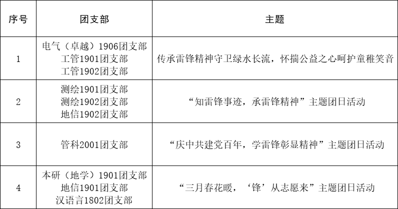 2021年3月份优秀主题团日活动评选结果