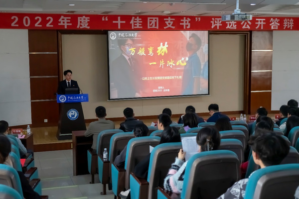 本次评选工作由线下测试、现场汇报两部分组成。线下测试以集中考试的形式对基础团务、共青团历史、团日活动设计等内容进行了笔试。现场汇报环节,23名候选人结合个人任期内实际工作情况,从支部特色、工作方法、工作成效等多个方面进行展示。地理信息科学专业本科1901团支部书记高琪在答辩中说道:“我想带大家一起打造一个人人创先争优的先进集体”,她带领的团支部所拍摄的视频作品“五四精神传承有我”在青春山东平台发布点击量超十万余次,团日活动“00后学子对话90岁老兵”被新华社、中国教育网报道。市场营销专业本科2002团支部书记吕林鑫带领团支部成功实现后来居上,荣获2022年度红旗团支部、先进班集体、优良学风班等荣誉称号。油气储运工程专业本科2005团支部书记王梦琪带领支部成员组建车轮志愿服务小组,从校园走向社会,聚焦乡村振兴、公共服务,支部成员暑期支教事迹登上齐鲁网、中国教育新闻网、齐鲁晚报等媒体。人工智能类专业本科(本研一体)2001团支部书记刘原歌带领支部成员深耕科创,支部科技竞赛、科研成果突出,勇夺中国大学生服务外包创新创业大赛国家一等奖。