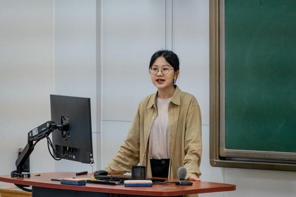 “用一年不长的时间,做一件终身难忘的事”。王彦方从研支团概况、支教中的具体工作、与学生的故事及支教收获四个方面讲述了她在内蒙古支教的故事。从日常授课到指导活动,科左后旗的诗词大会、班级的主题演讲比赛等,内蒙古的支教生活丰富多彩,这其中有师生情谊,也有志愿者之间的友情。王彦方感叹:“在支教过程中,我们跟孩子们会互相成长,也会收到来自孩子们的思想观念及价值观点的反馈。”