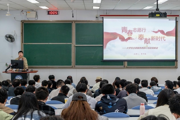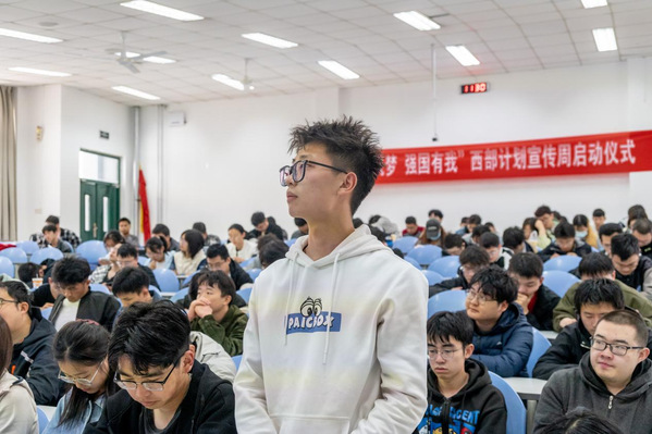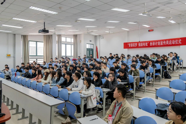 4月20日,“青春筑梦,强国有我”西部计划宣传周启动仪式于讲堂群西环101顺利举行。校团委兼职副书记李可程,西部计划优秀志愿者程爱馨、周慧,第24届研究生支教团志愿者王彦方及120位学生参加启动仪式。