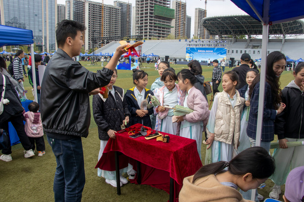 吉他的悠扬旋律飘荡在体育馆、游泳馆上方,分布在校园各处的5个快闪点用精彩的快闪表演拉开了第二十一届社团文化节的序幕。乐享青春,“创造太阳”雕塑前,观众与民乐队成员在流淌的乐符间共享传统音乐之美;舞动未来,荟萃广场上,学生与习舞堂的舞者们在律动的舞步中感受青春的脉搏;更有传统武术协会和火鸟动漫社进行路演,吸引了众多学生打卡合照,尽显热闹氛围。