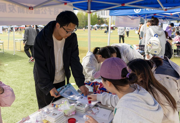 四月的石大,春光晴朗,田径场上,热闹喧腾。75个社团齐聚于此举行游园会,思想政治、文化体育、学术科技、志愿公益四种类型的社团结合自身特色,全方位、多角度地进行展演。主舞台上,随机舞蹈,红歌、校歌接力唱,诗词接龙,接力画轮番登场,现场学生纷纷上场大展才情,在欢声笑语中觅得新的爱好、找寻新的同好。年轻的心灵热情歌唱,青春在草坪上肆意激荡,一首接力唱完的歌、一幅共同完成的画,汇成了本届社团文化节的特色记忆。