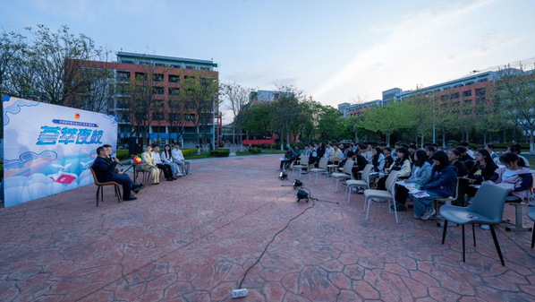 “要怎么形容明天,像我一样;承风骨亦有锋芒,有梦则刚……”4月29日傍晚,在昂扬、动人的《有我》的陪伴下,第100期荟萃夜校以“传承五四精神,青春挺膺担当”为主题的夜校于荟萃广场开讲。我校青年五四奖章获得者白英睿、潘原以及优秀学生代表与50余名团员青年围圆而坐,促膝而谈,通过与大家面对面交流,引领青春之路,回应青春之问,坚定青春理想。