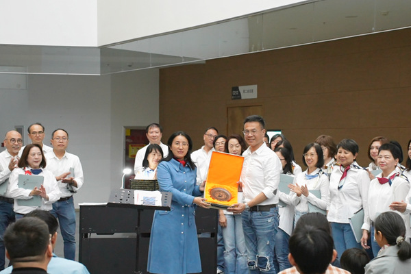 香港家长合唱团与学校互赠纪念品 尹泽琛摄