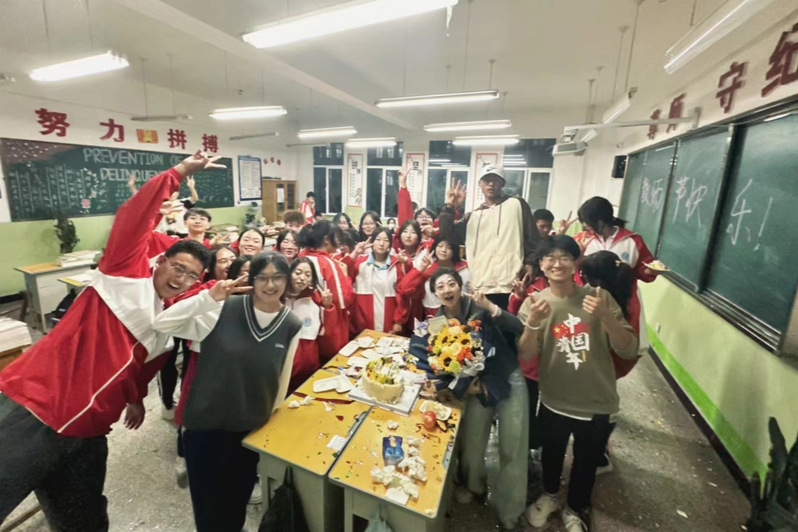 王泉淞与学生庆祝教师节