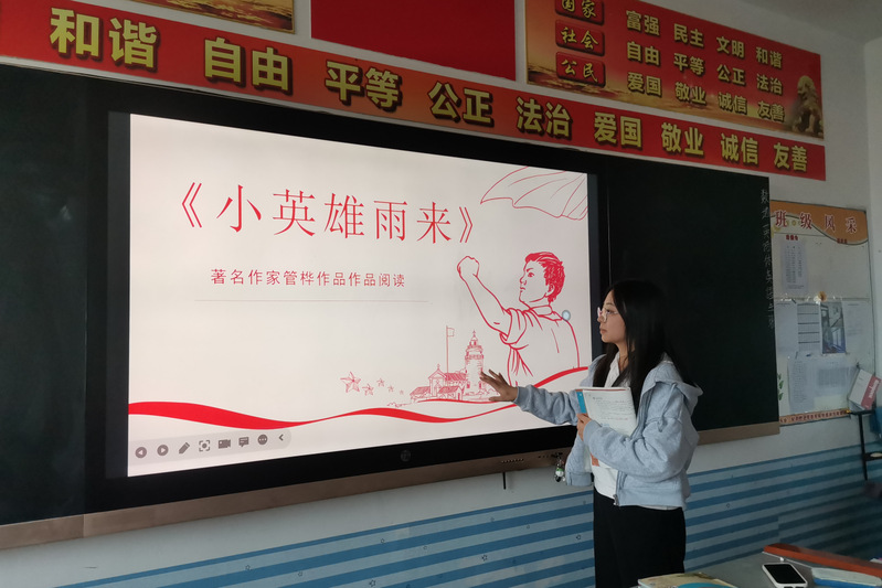 “来!大家跟着我一起,咱们一起把这首词唱出来!”付枝正巧妙地将自己的音乐专长融入语文教学之中,通过音乐与诗词的跨界融合,让学生在享受艺术之美的同时,深刻领悟并掌握语文知识。面对部分学生基础薄弱的问题,郭佳璐则利用午自习时间为初中学生补习小学阶段遗漏的知识点,努力让每位学生跟上教学的步伐。为表彰西和分队在服务期间的优秀表现和为西和县教育做出的而贡献,西和县北川初级中学为郭佳璐、孙清、于怡三人颁发优秀支教教师证书。